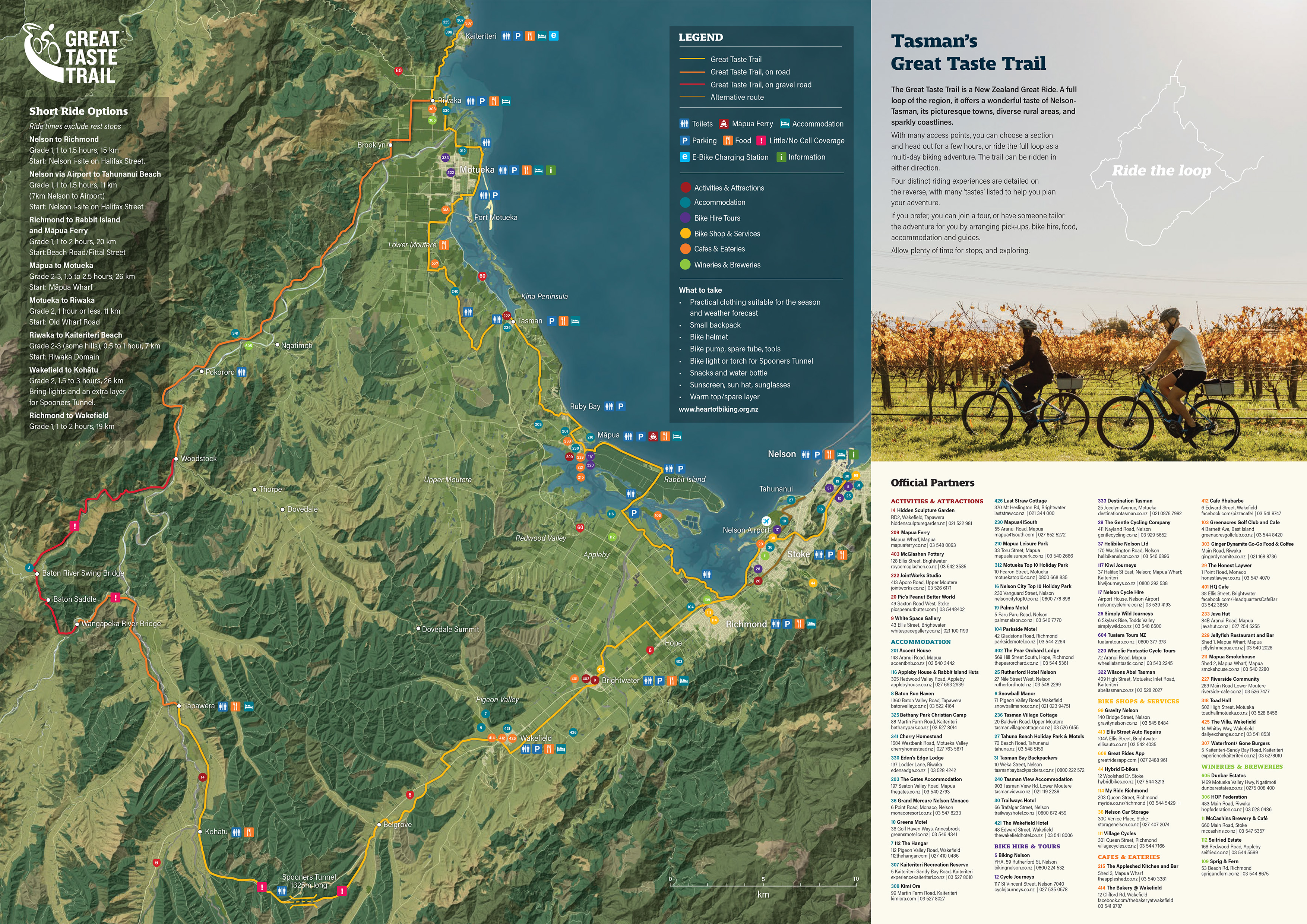 The Great Taste Trail is well served by shuttles and cycle tour companies offering everything from bike hire and transport, to fully packaged independent and guided tours factoring in off-the-bike activities such as hiking in Abel Tasman National Park.