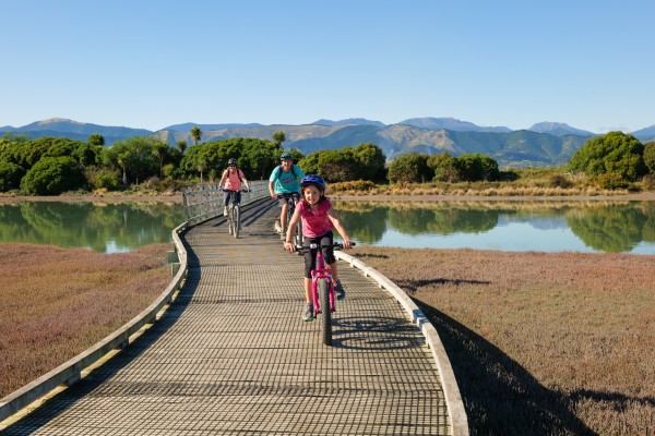 As the trail nears Richmond it splits in two, with the right fork leading towards Mapua on a mix of quiet lanes and a stopbank track. It then crosses the Waimea River via a purpose-built suspension bridge.