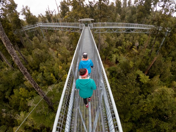 Along the way it’s worth the detour to West Coast Treetop Walkway (pictured below, photo credit BareKiwi). It’s an exhilarating tree top adventure among temperate rainforest giants. Experience life with the birds high in the ancient rimu and kamahi tree canopy. It’s also a great place for refreshments.