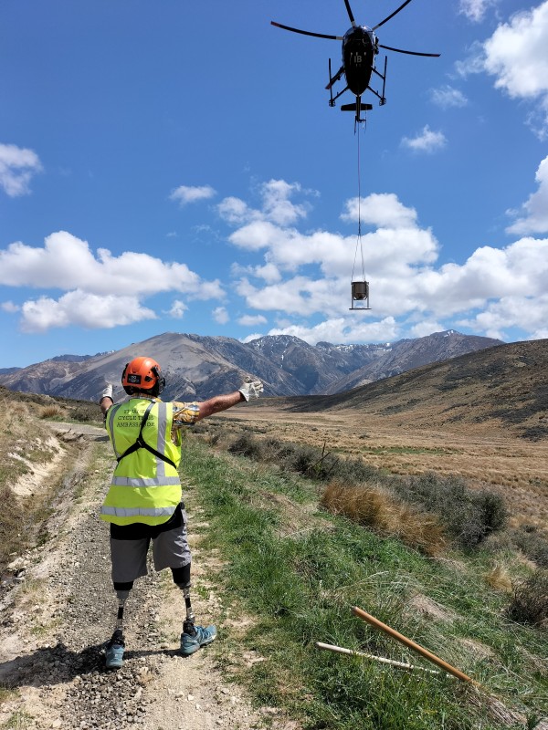 Mark directs a helicopter as part of the Homestead Run Loop upgrade work
