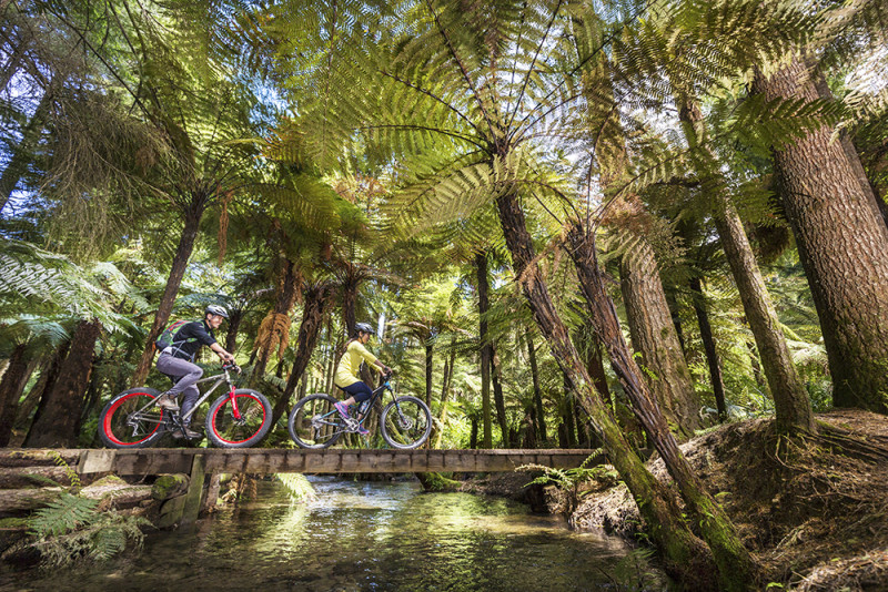 We also spend loads of time in the Redwoods — Whakarewarewa Forest in Rotorua, home to the fabulous new Great Ride – the Whakarewarewa Forest Loop. Just the complete package for a day trip with something for everyone.